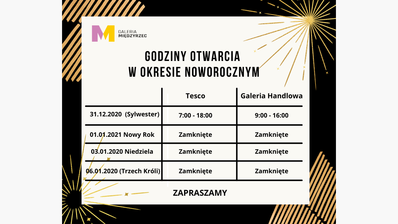Godziny otwarcia w okresie Nowo Rocznym